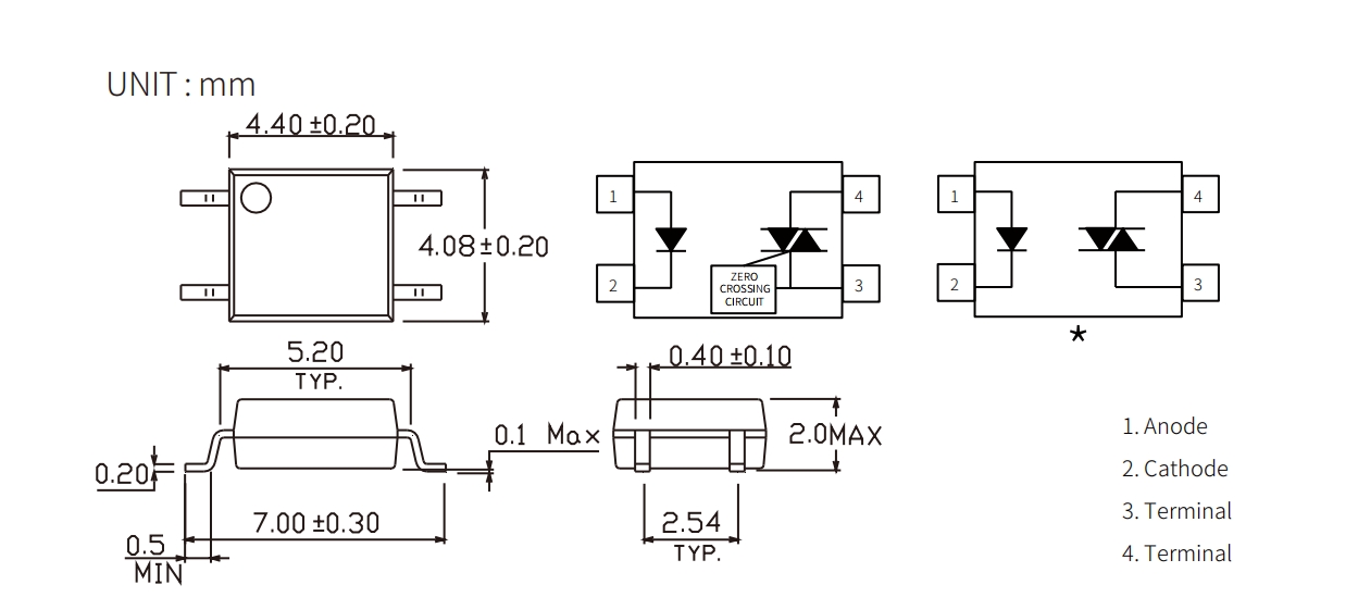 Product Package size(LxWxHmm) VF(V) VDRM(Max) (V) VTM(V) VINH(V) IT (rms)(mA) IFT(mA) Topr (Min) (degC) Topr (Max) (degC) Viso (Vrms)